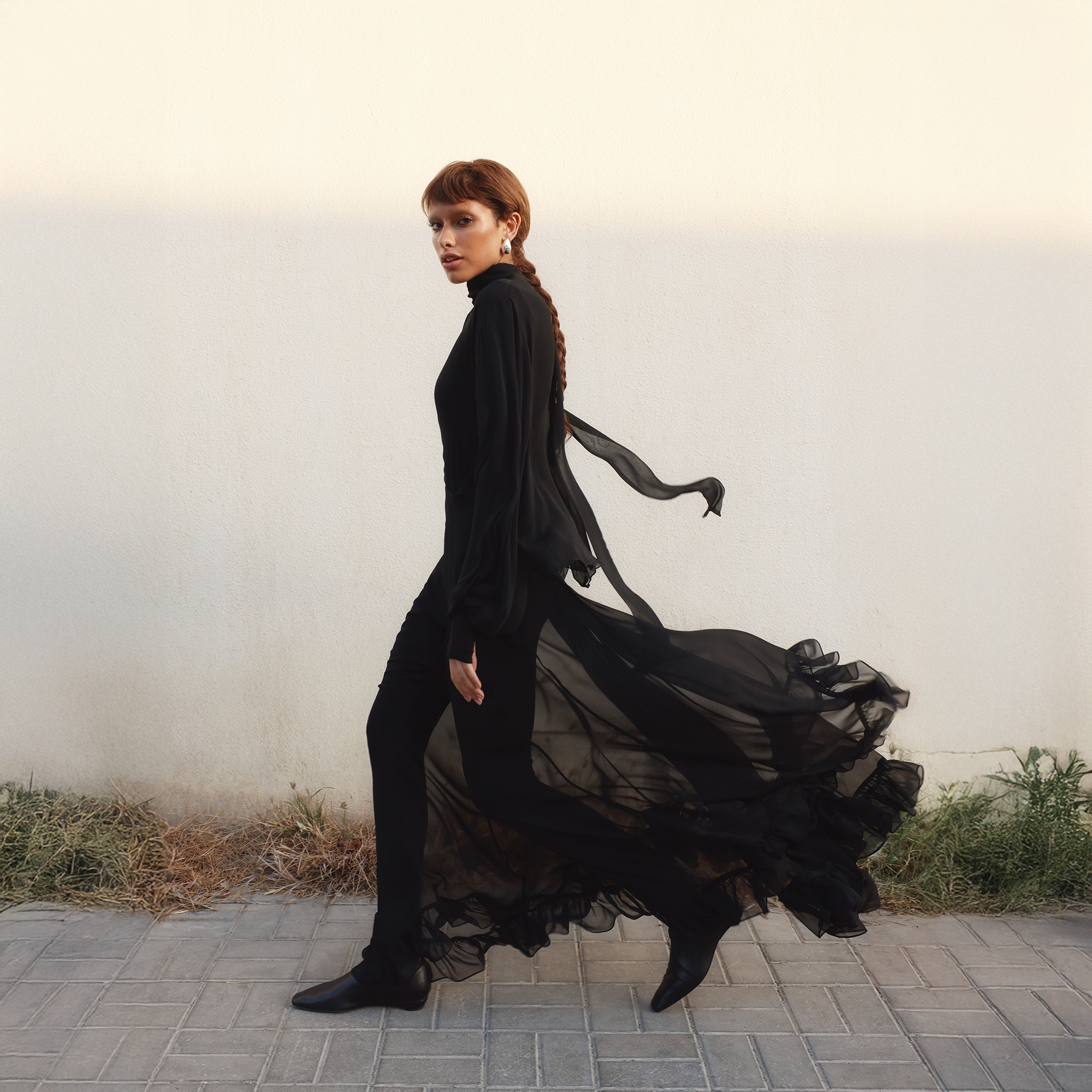 The Chiara Skirt is a fluid, romantic piece crafted in Sheer Silk Georgette. Designed with a gentle flare and Ruffled Hemline, its asymmetric detailing adds movement and contemporary elegance to evening wear.