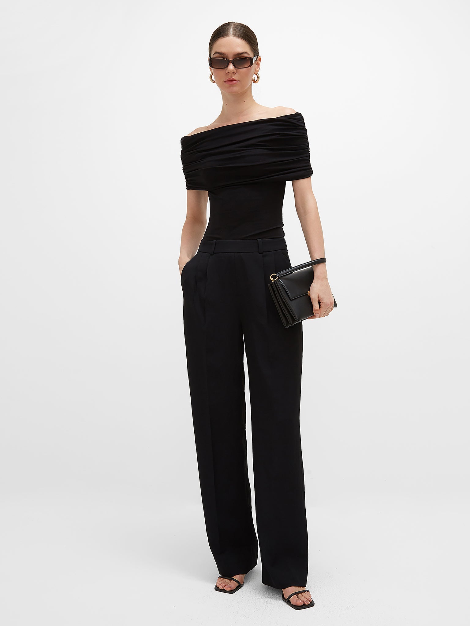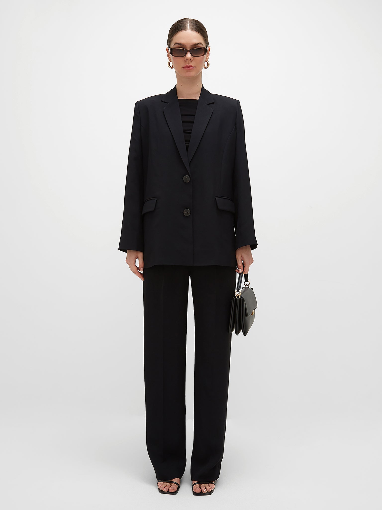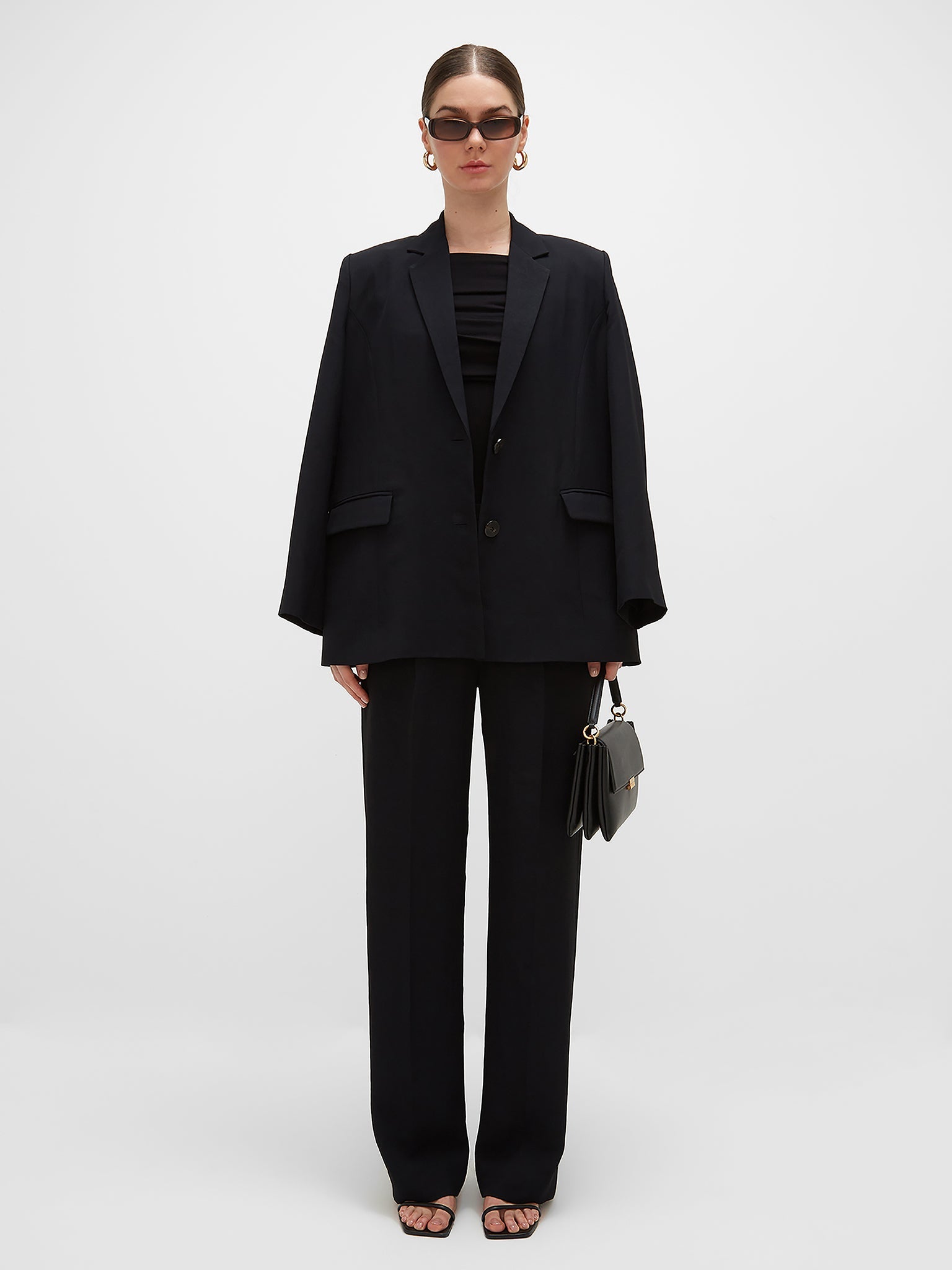 Tailored to perfection, designed to move. Crafted in UAE from luxurious sustainable crepe, these high-waisted straight trousers offer a sleek, elongated silhouette with a fluid drape that feels effortlessly refined. The front pleats add soft structure, while the flat front pockets keep the design clean and polished. A hidden side zipper closure ensures a seamless fit, making every step feel weightless.