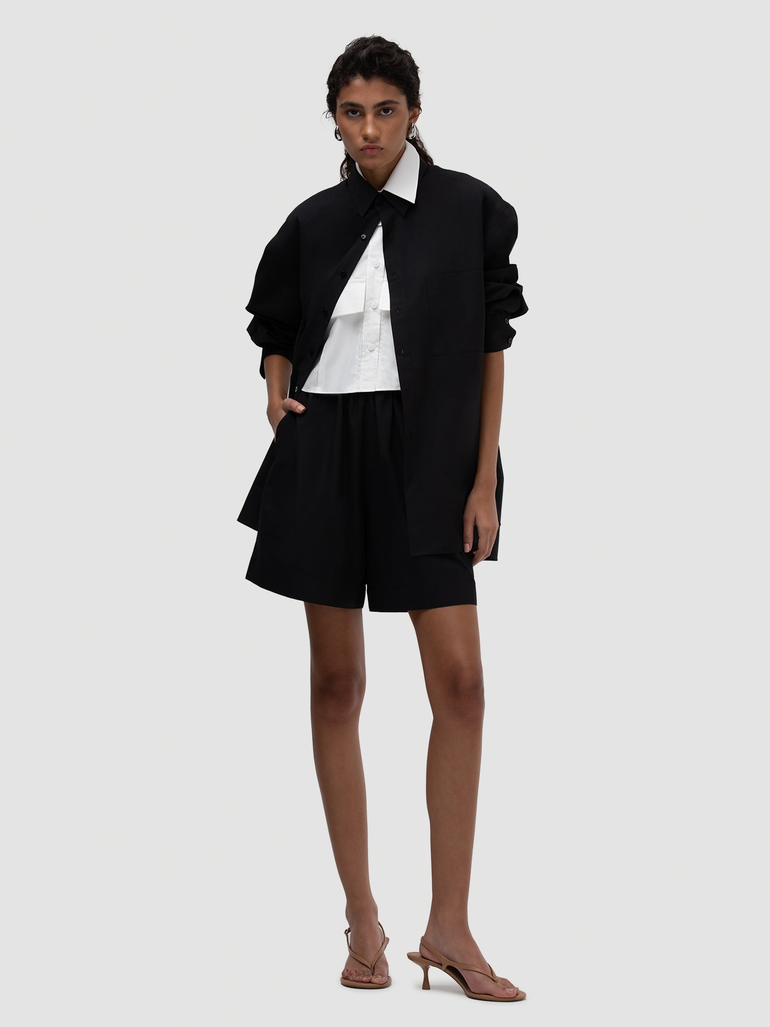 Perfect for laid-back luxury or elevated casual dressing, these shorts move with you, not against you, ensuring ease in every step. Dry clean only to preserve their crisp yet soft feel.