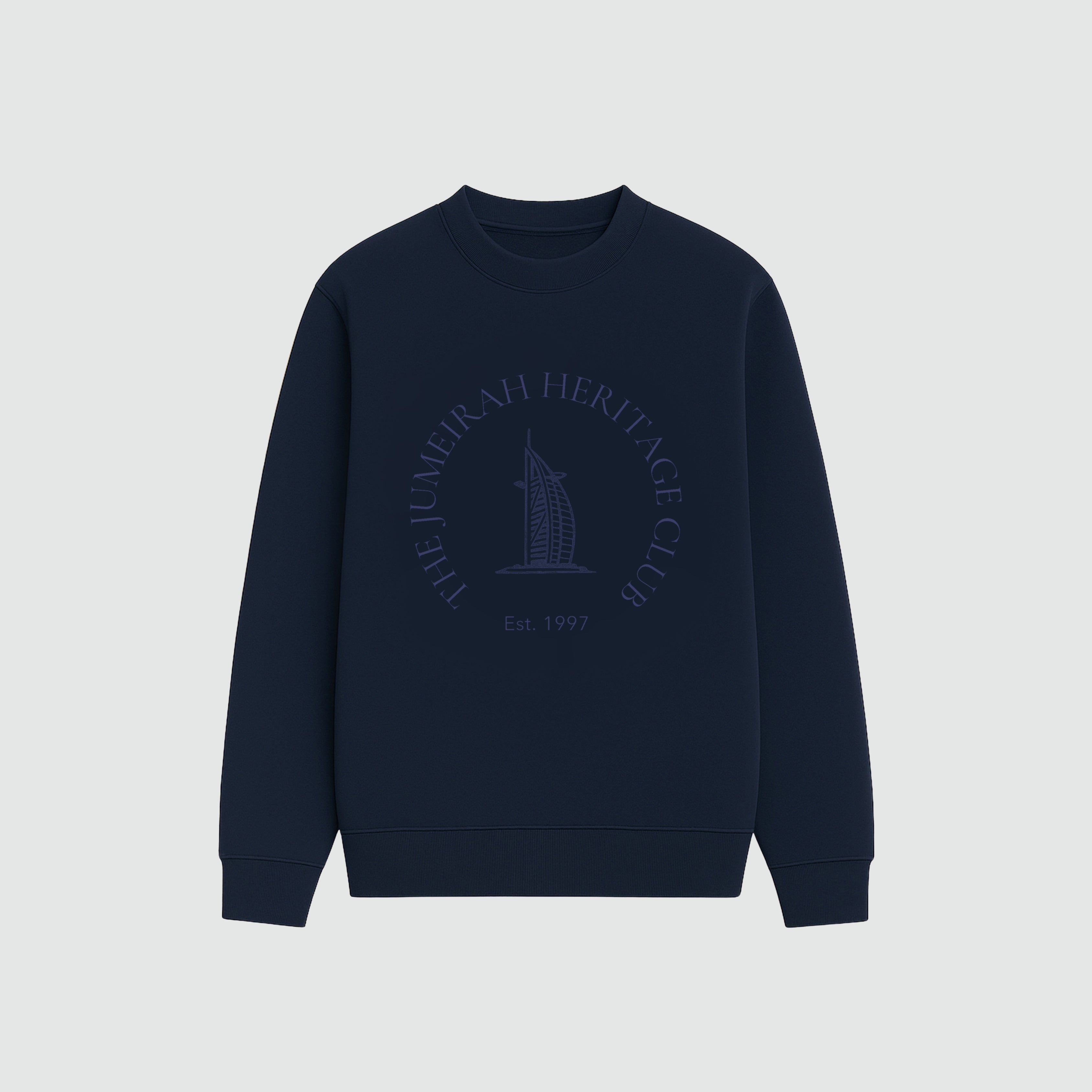 Part of the exclusive Jumeirah Heritage Club capsule, this unisex jumper captures the essence of quiet luxury and modern nostalgia. Crafted from refined cotton with a soft, structured finish, it features the Jumeirah Heritage Club logo featuring the iconic Burj Al Arab in tonal dark blue, a subtle nod to belonging and timeless simplicity. The ribbed crew neckline and cuffs lend a touch of vintage athleticism, while the minimalist silhouette embodies Bouguessa’s signature approach to effortless refinement. A limited-edition piece that reinterprets Dubai’s coastal heritage through a contemporary lens.