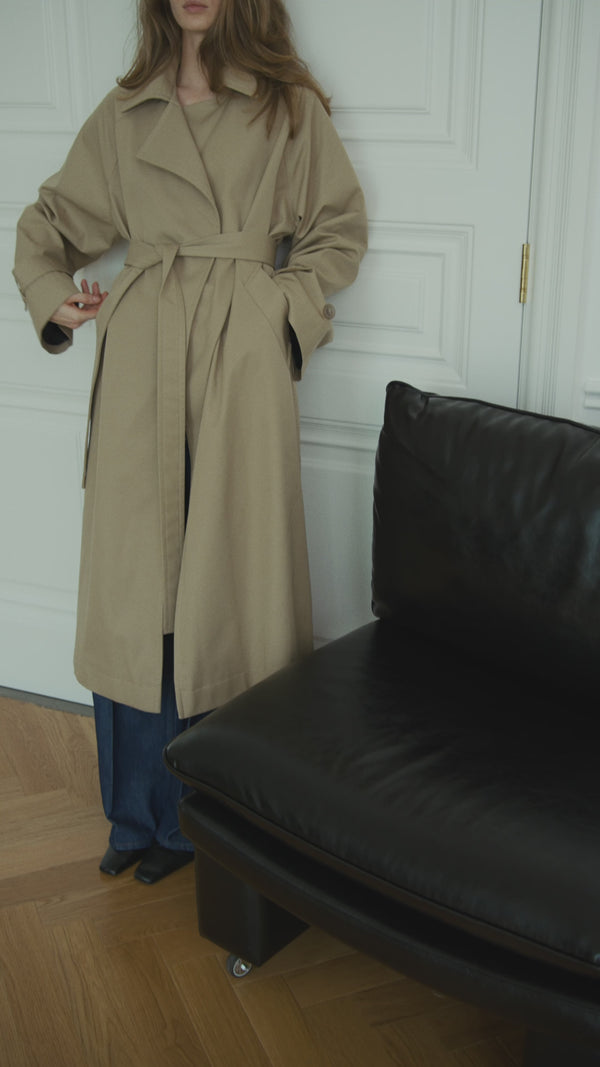 The Kai Trench is designed to make a powerful style statement. Featuring an oversized fit and mid-weight cotton fabric, it exudes confidence and versatility. Its tie belt closure and front pockets add an extra layer of cool, making it a must-have for your wardrobe.