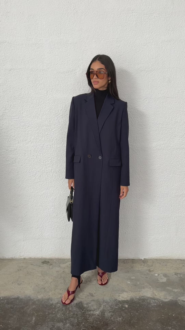 Noura Long Blazer Abaya - Dark Blue