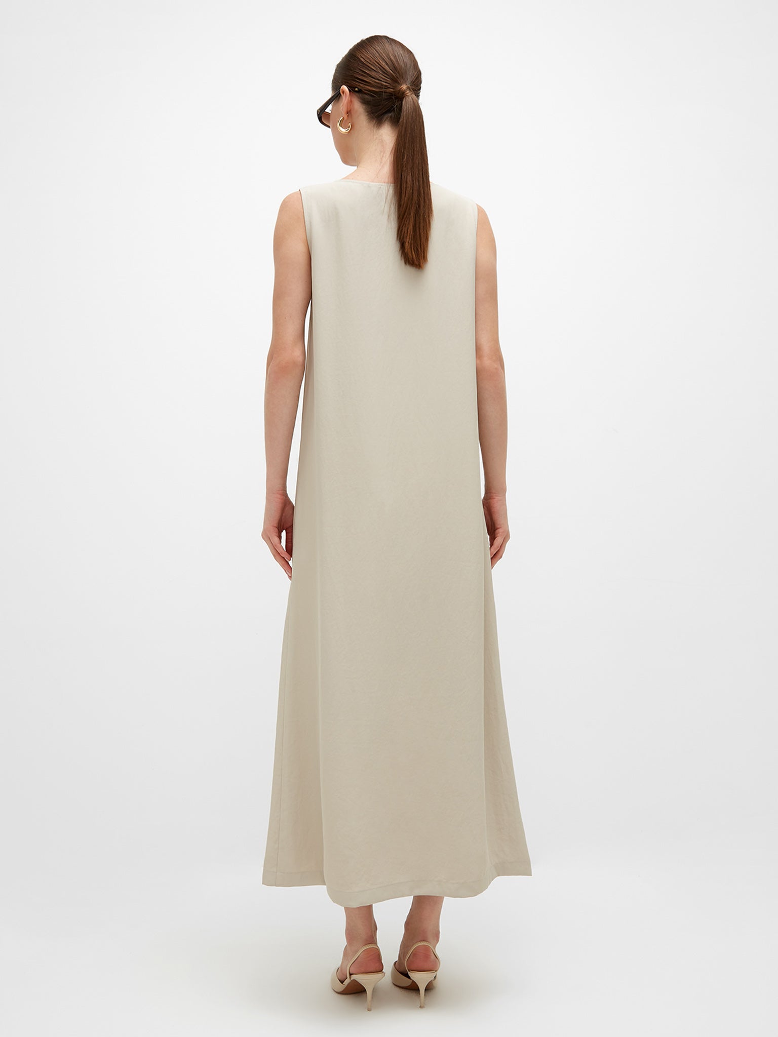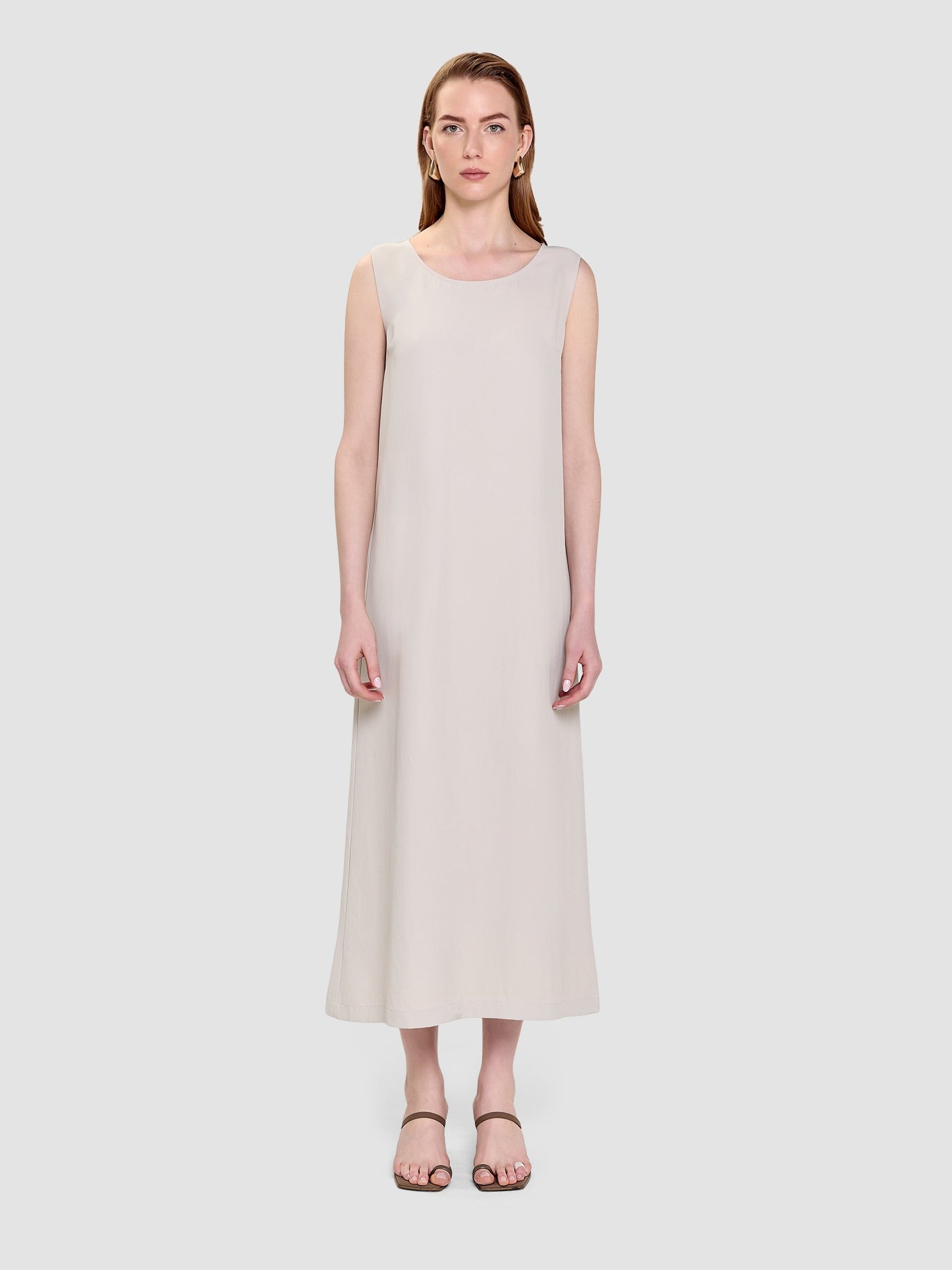 Elevate your style with the Rabea Dress, a versatile and chic addition to your wardrobe. Designed for a straight fit in mid-weight twill crepe fabric, this ankle-length dress is perfect for layering, adding an element of elegance to your ensemble.