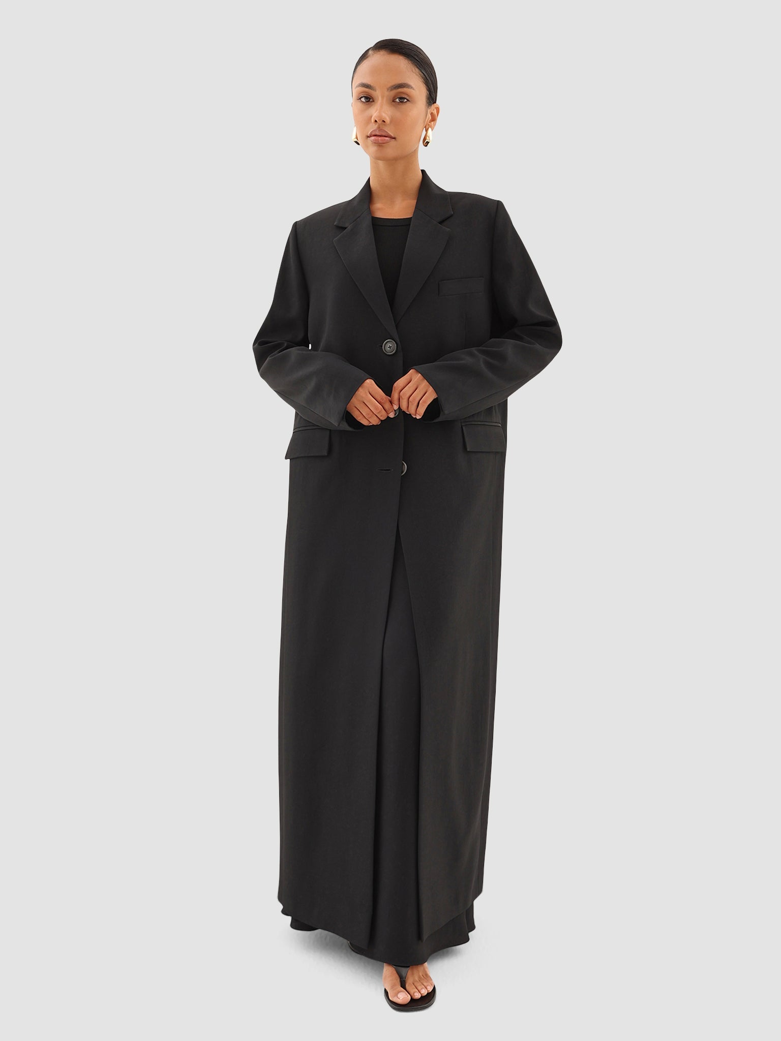 Rawan Long Blazer Abaya - Black