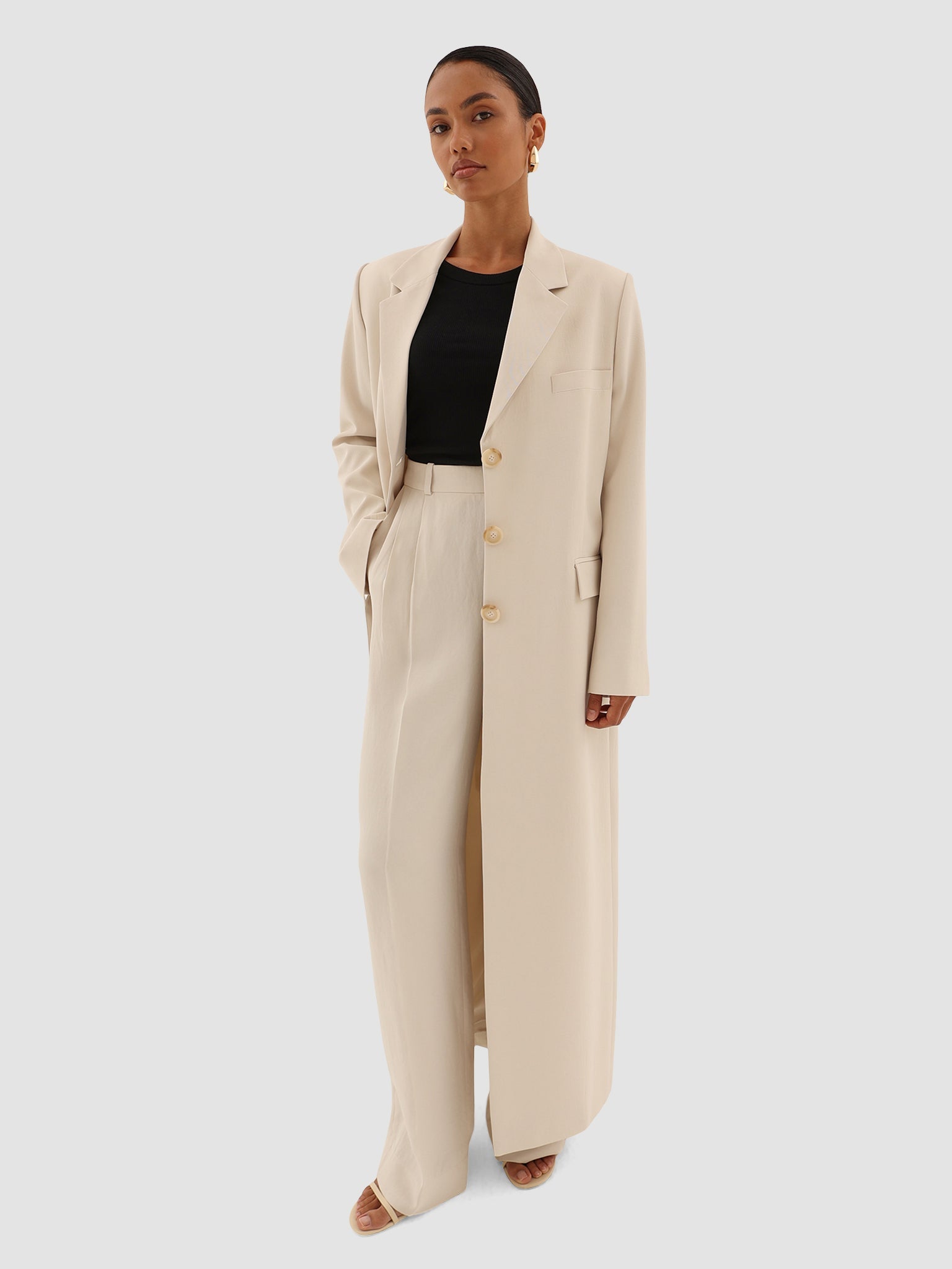 Rawan Long Blazer Abaya - Off-White